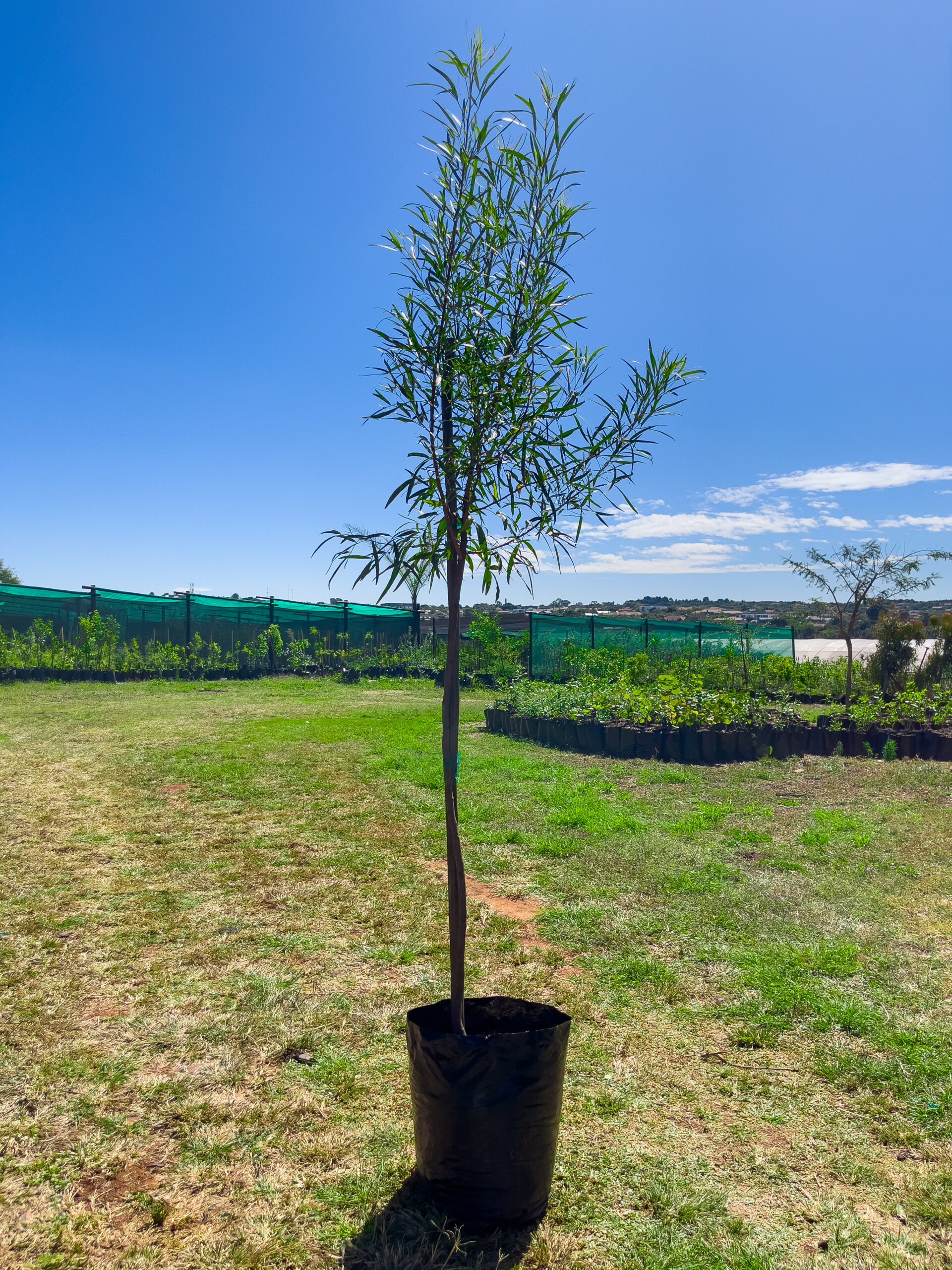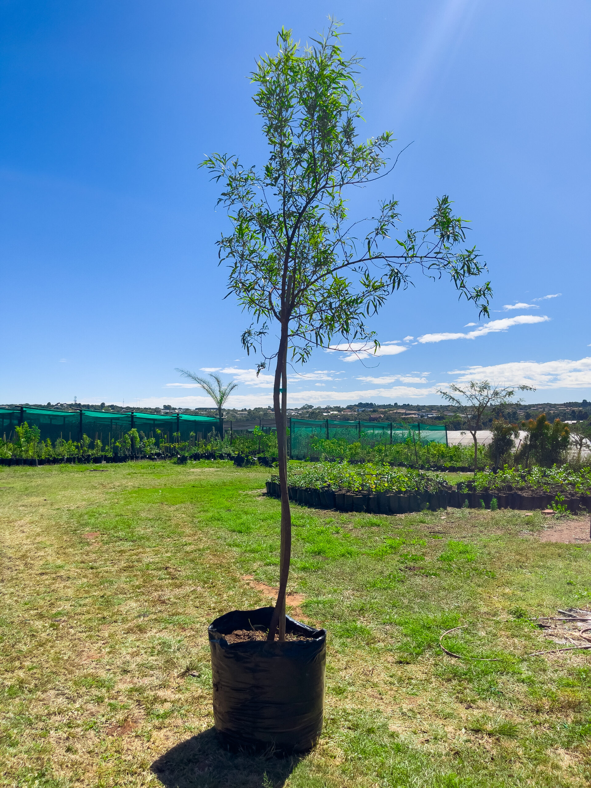 Searsia lancea commonly known as karee, karree, is an evergreen, frost hardy, drought resistant tree, which can reach up to 8 metres in height with a 5-metre spread.